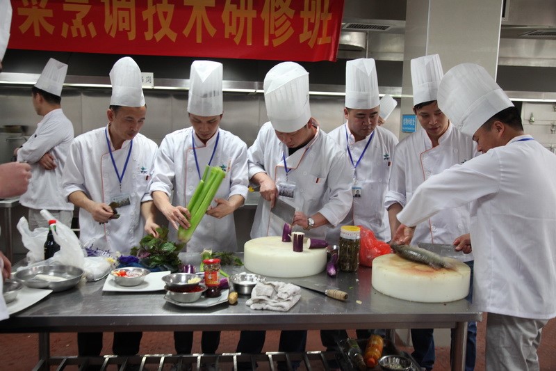 在為期13天的培訓(xùn)中,學(xué)員們主要學(xué)習(xí)了粵菜發(fā)展趨勢(shì)、粵菜基本理論及制作方法、傳統(tǒng)粵菜菜品的制作、分子烹飪工藝制作技術(shù)等課程,并于4月20日前往華南師范大學(xué)進(jìn)行食堂菜品制作現(xiàn)場(chǎng)交流,深入到各食堂加工區(qū)和售賣區(qū)詳細(xì)了解食堂經(jīng)營管理各環(huán)節(jié)的運(yùn)作情況,并就食堂經(jīng)營管理的成功經(jīng)驗(yàn)和特色亮點(diǎn)、食堂布局、機(jī)器設(shè)備配置、生產(chǎn)加工、伙食品種、服務(wù)項(xiàng)目等多方面問題進(jìn)行了深入的交流探討。